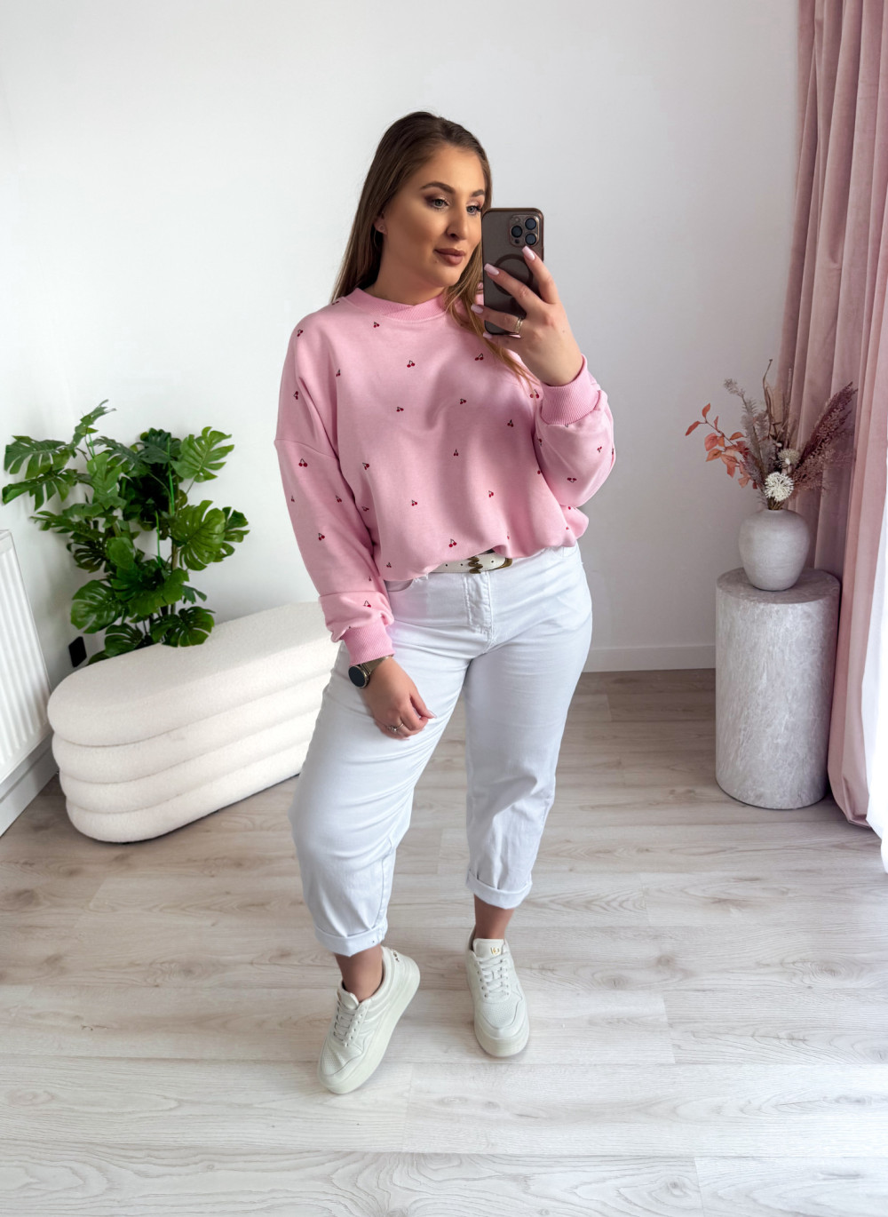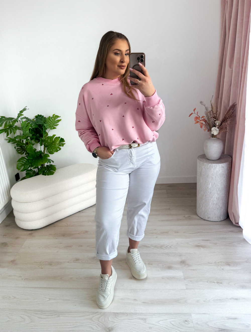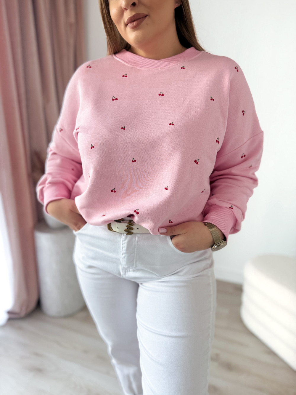 Stylowa bluza w wisienki o modnym kroju oversize, która łączy wygodę z uroczym, dziewczęcym akcentem. Luźny fason zapewnia pełną swobodę ruchów i świetnie wpisuje się w codzienne, casualowe stylizacje. Długie rękawy otulają w chłodniejsze dni, a miękki materiał gwarantuje komfort noszenia przez cały dzień.