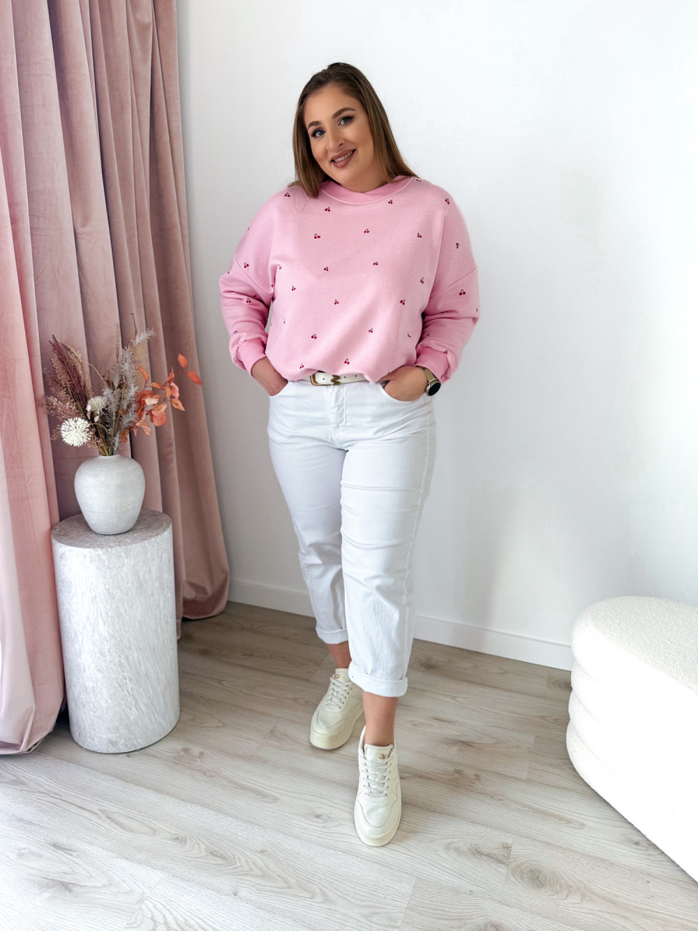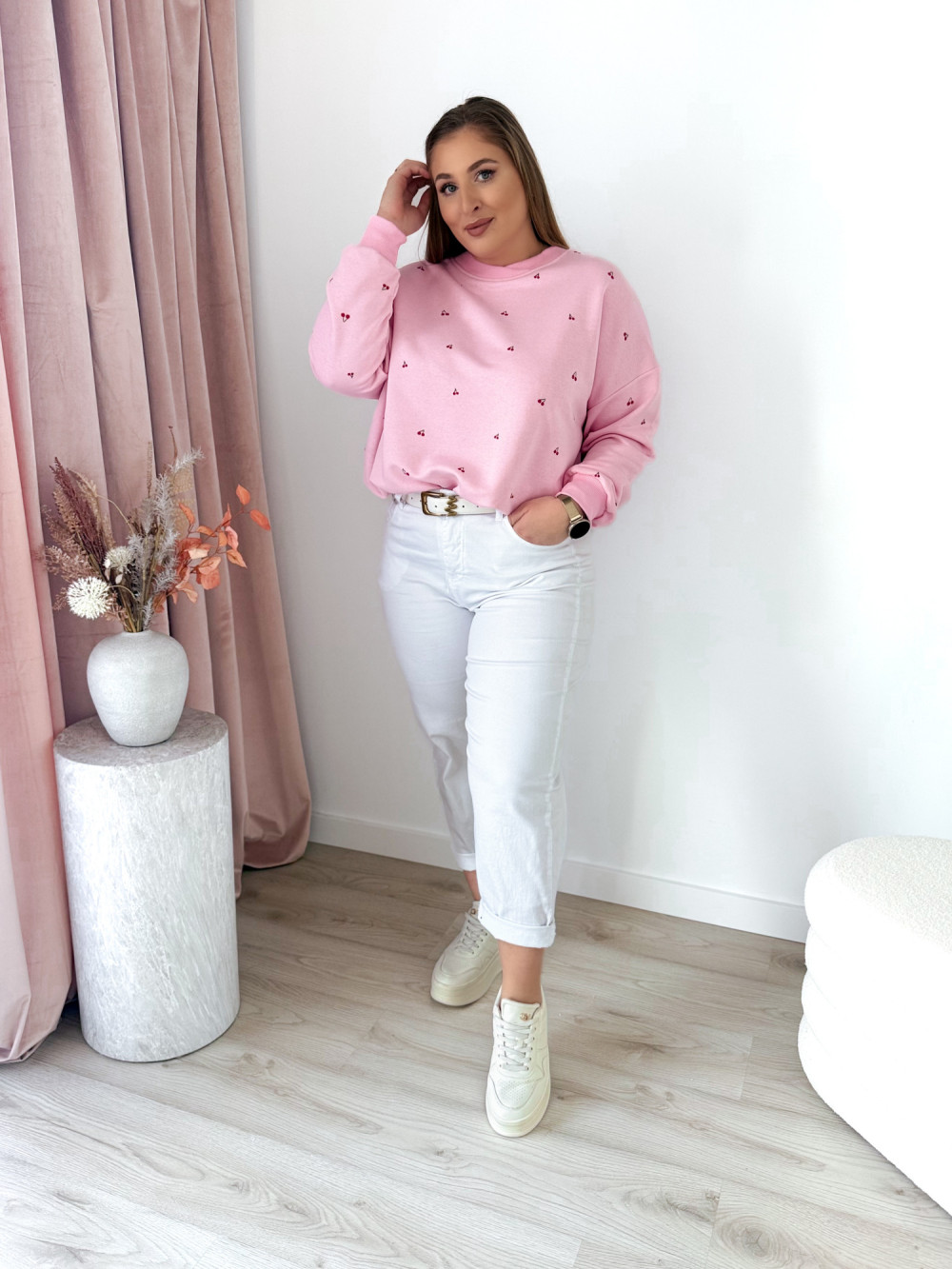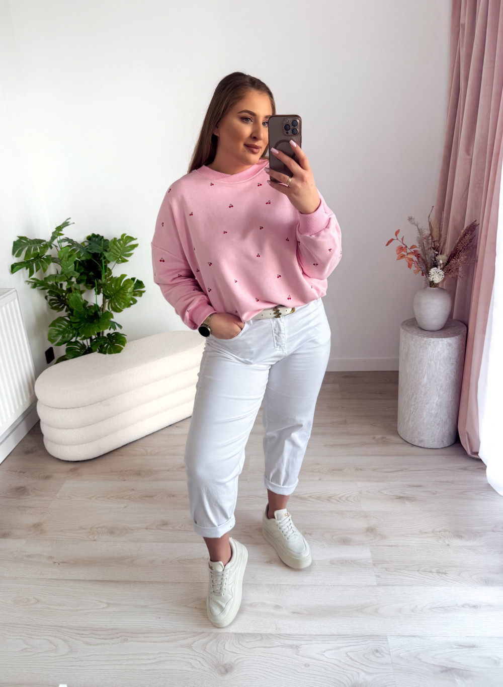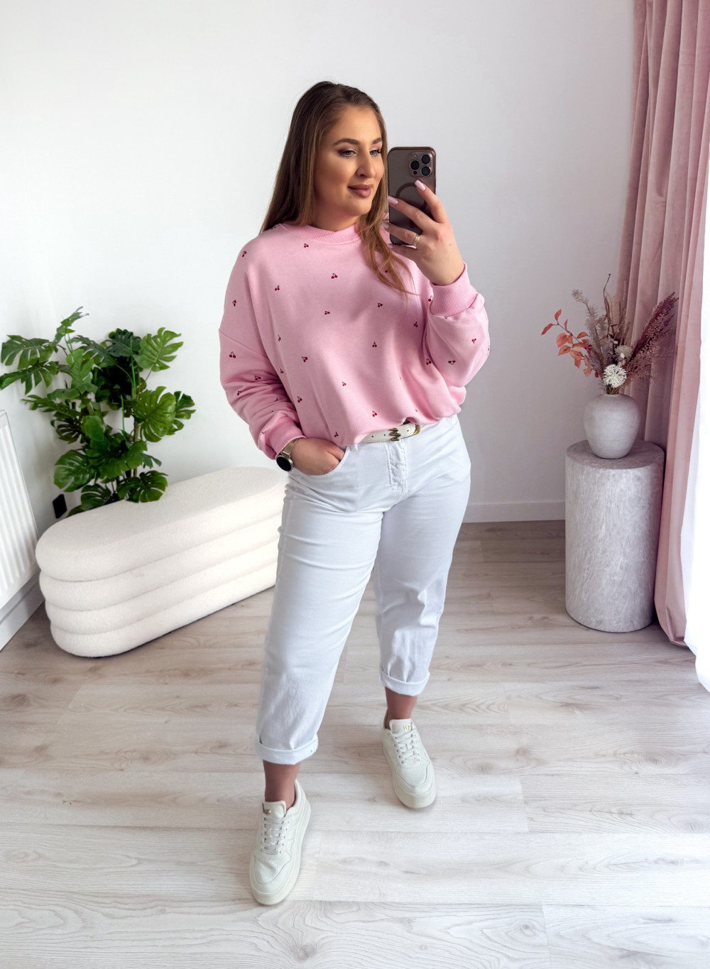 Stylowa bluza w wisienki o modnym kroju oversize, która łączy wygodę z uroczym, dziewczęcym akcentem. Luźny fason zapewnia pełną swobodę ruchów i świetnie wpisuje się w codzienne, casualowe stylizacje. Długie rękawy otulają w chłodniejsze dni, a miękki materiał gwarantuje komfort noszenia przez cały dzień.