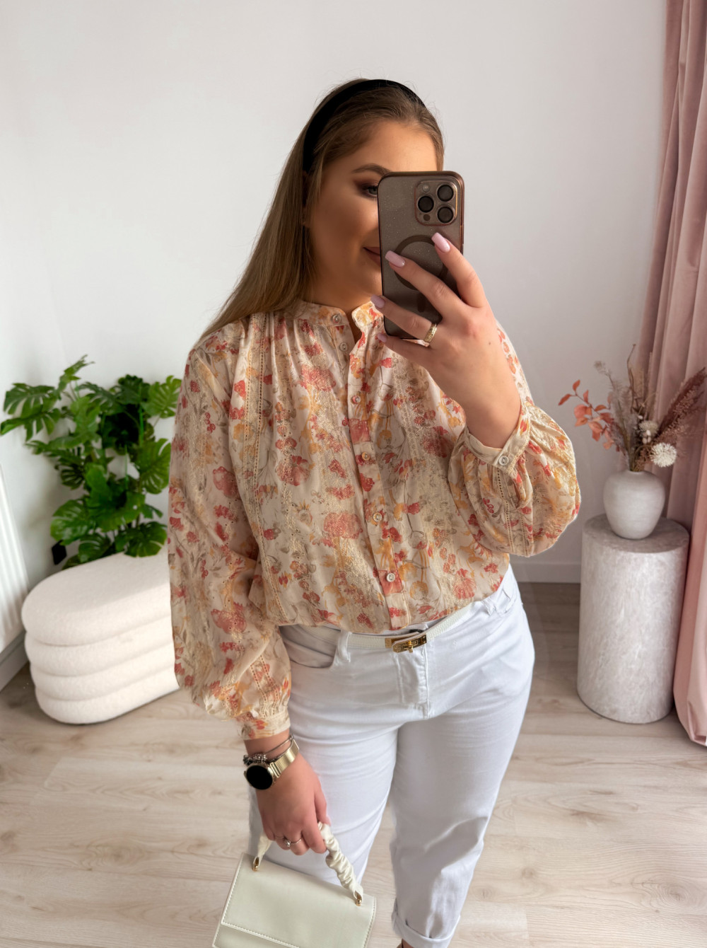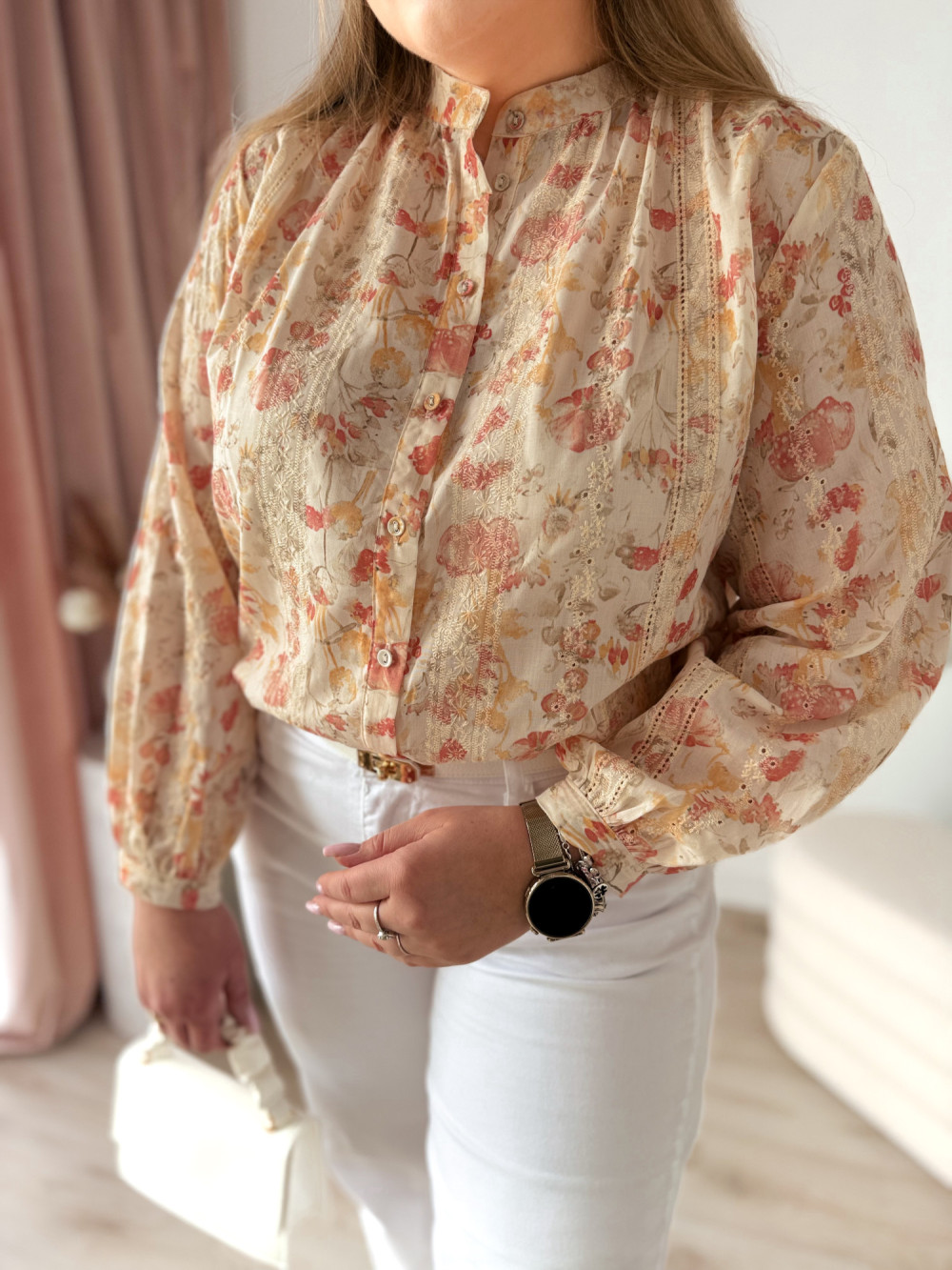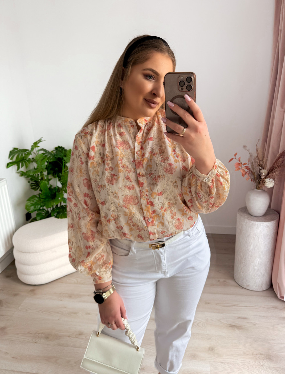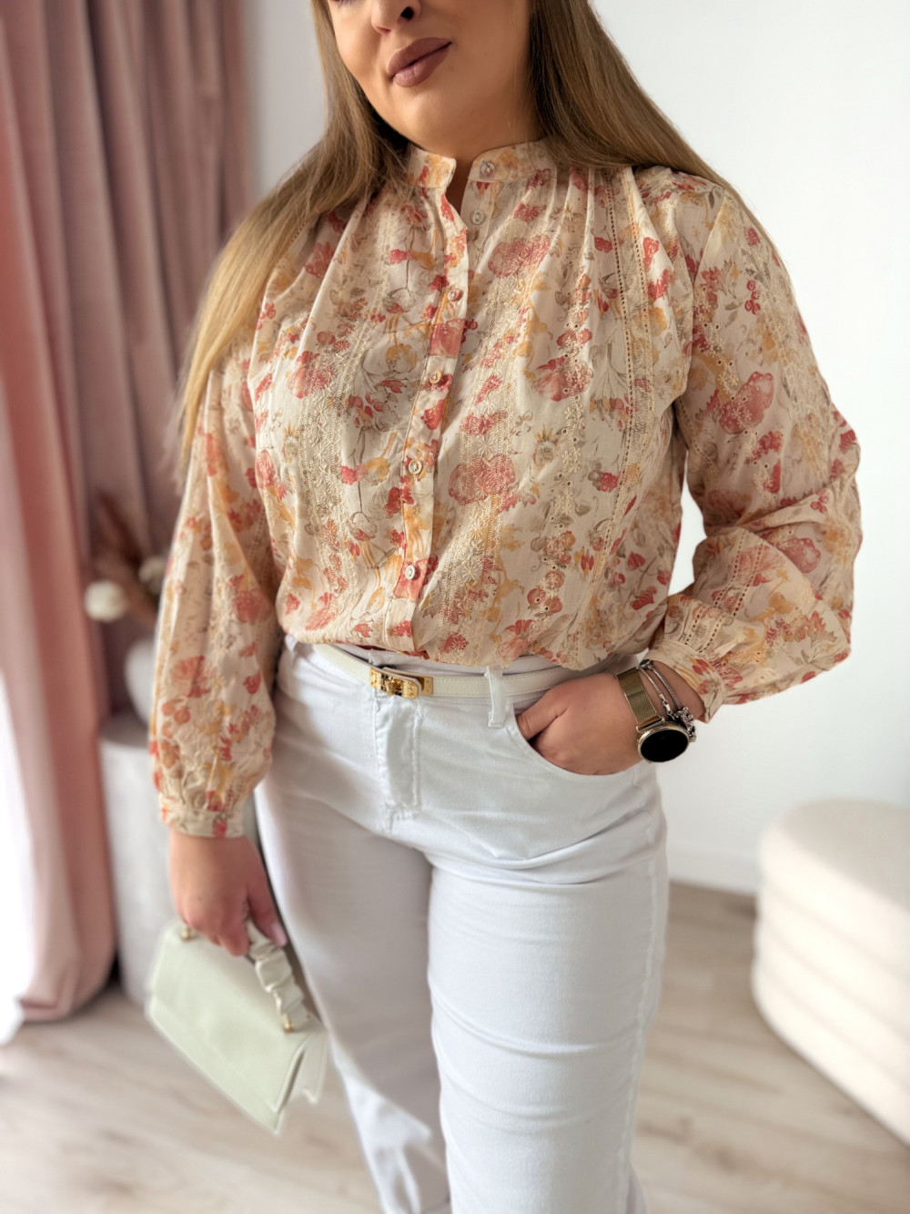 Koszula w pomarańczowo-różowe kwiaty z koronką Santana