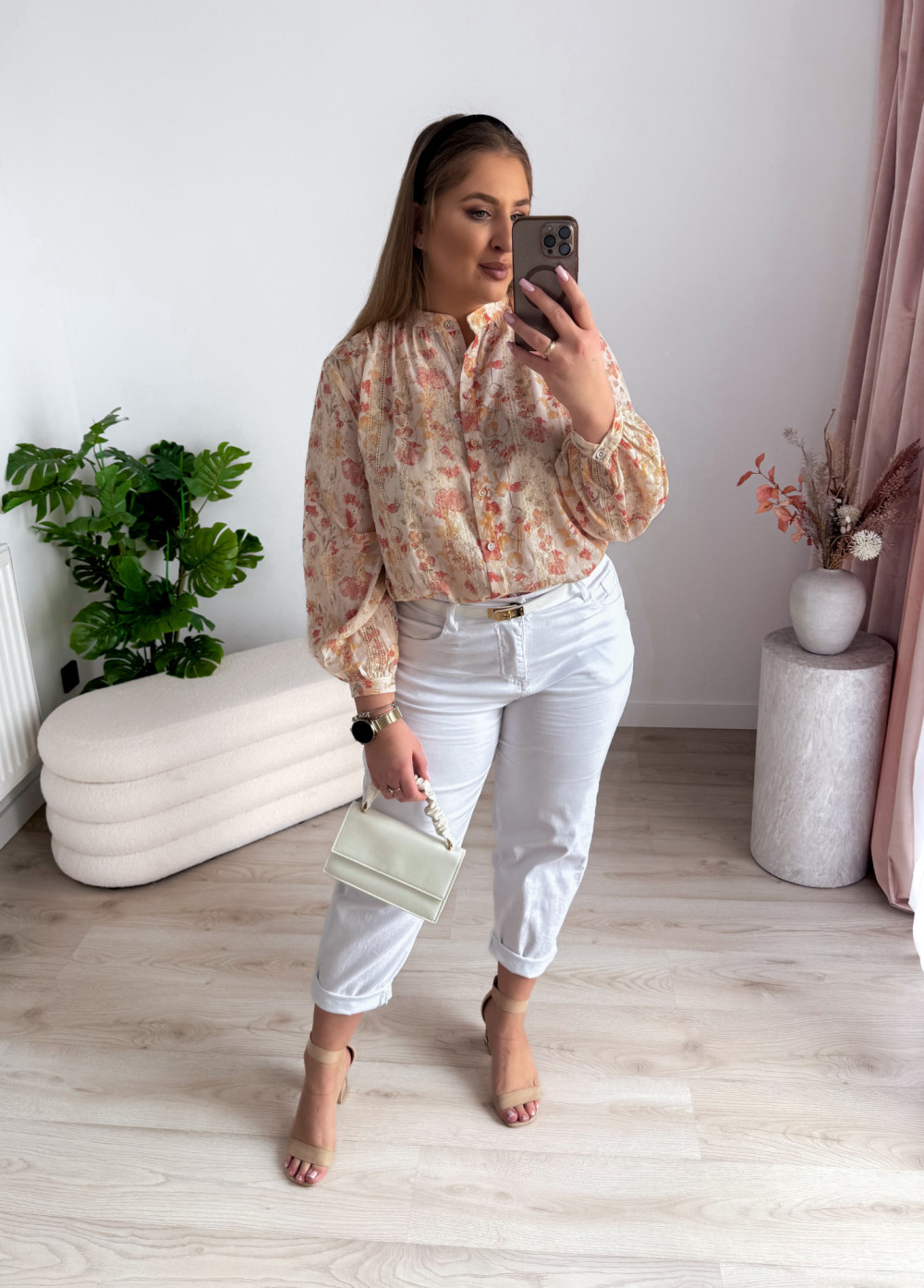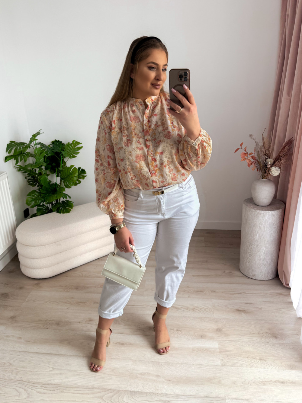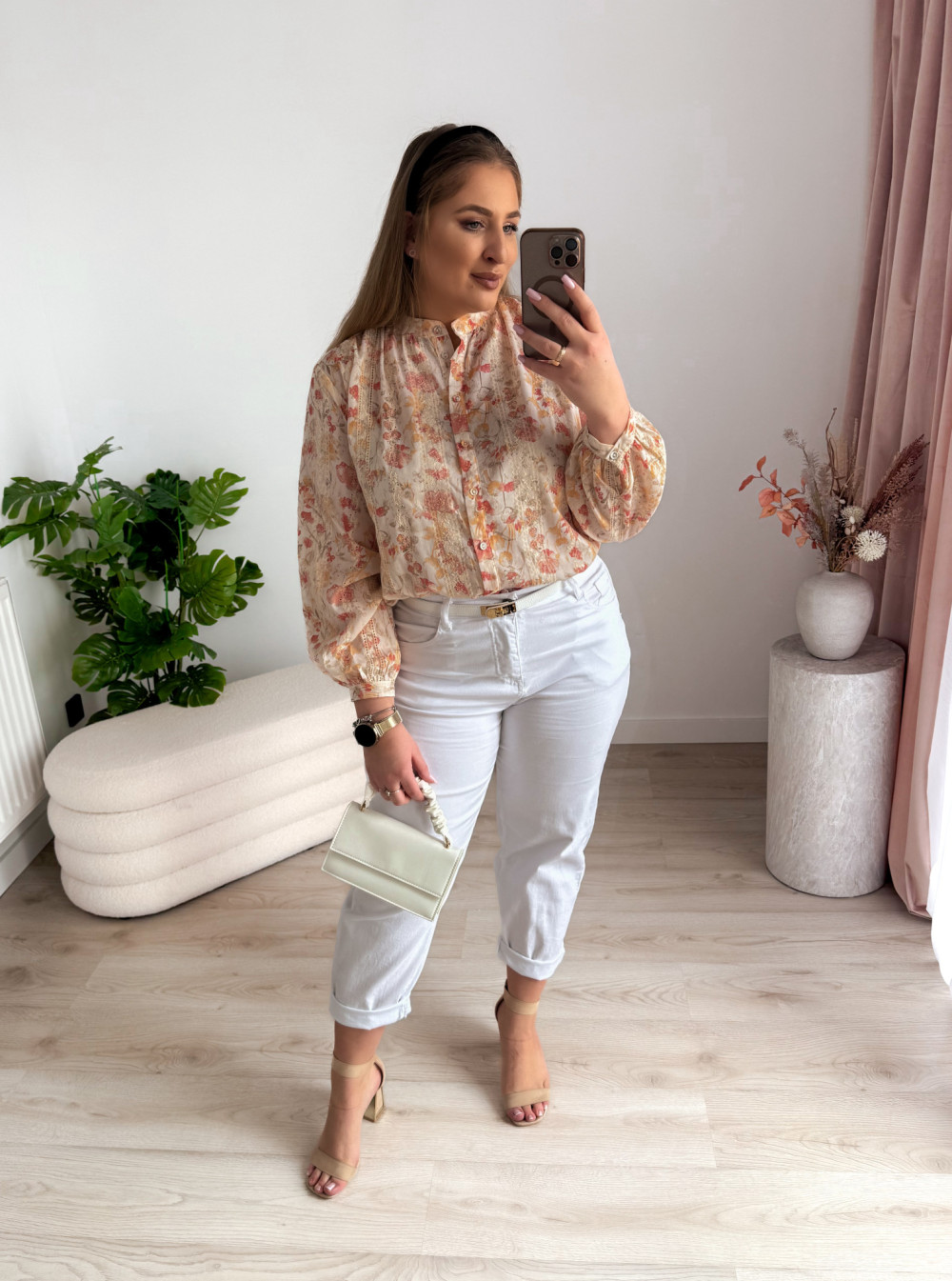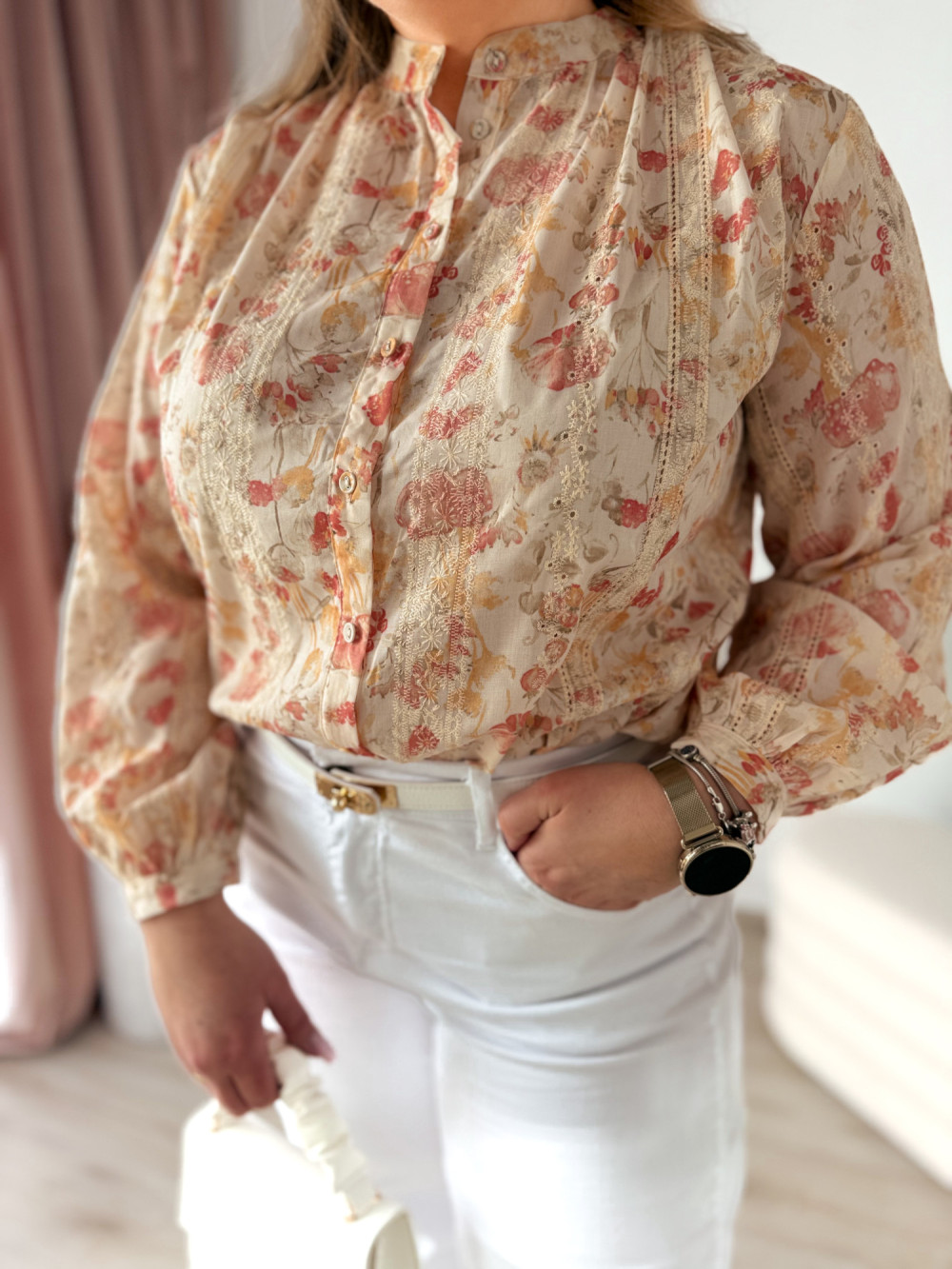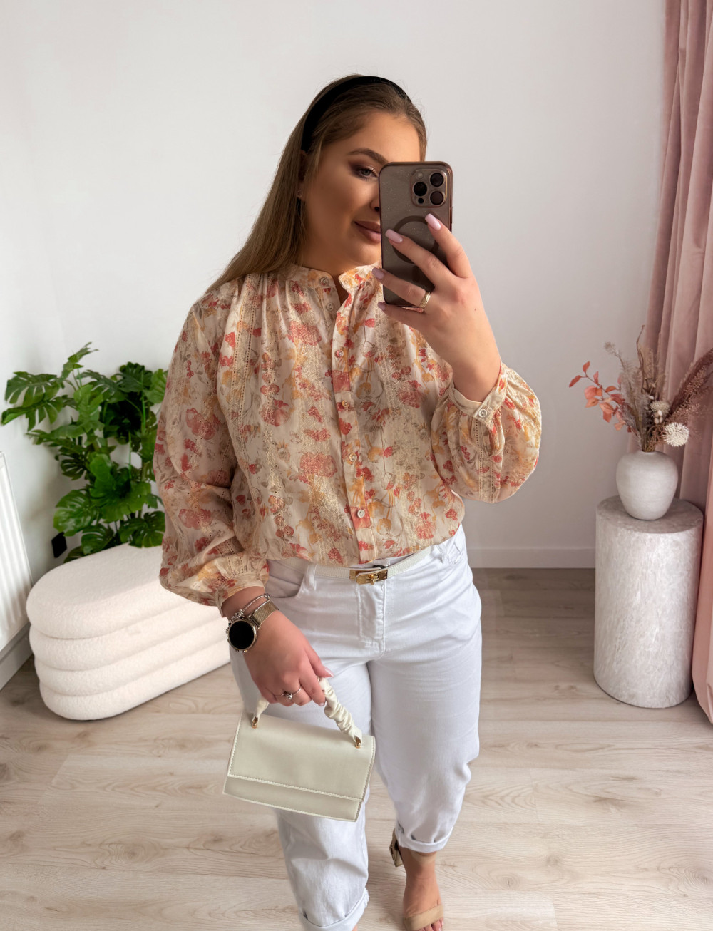 Koszula w pomarańczowo-różowe kwiaty z koronką Santana