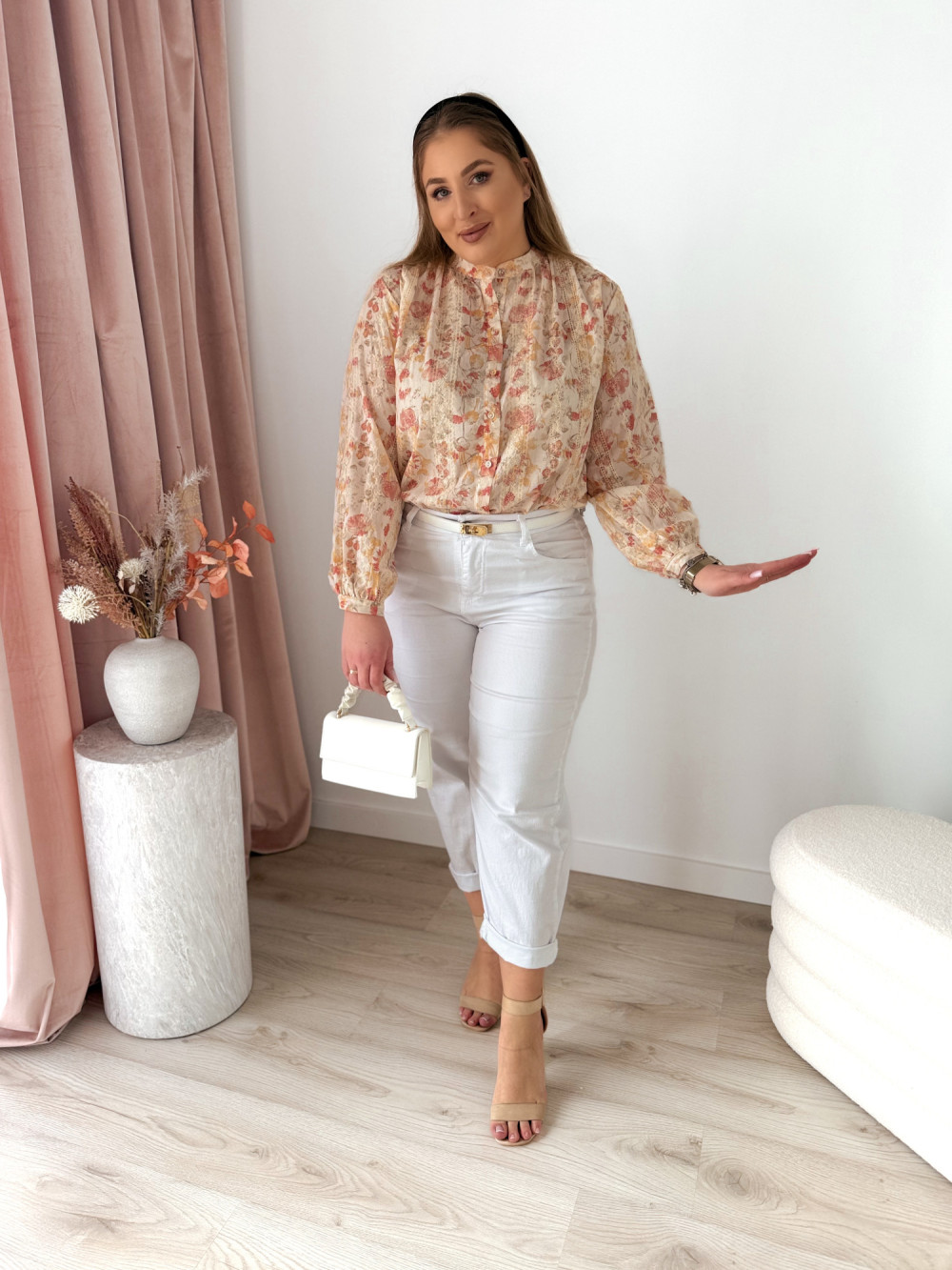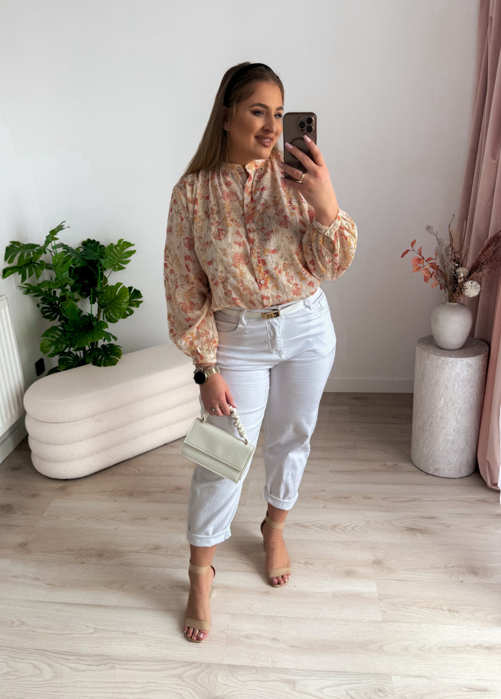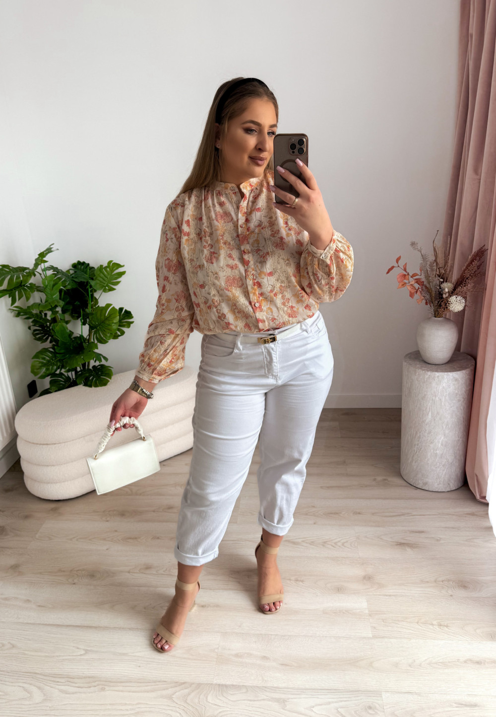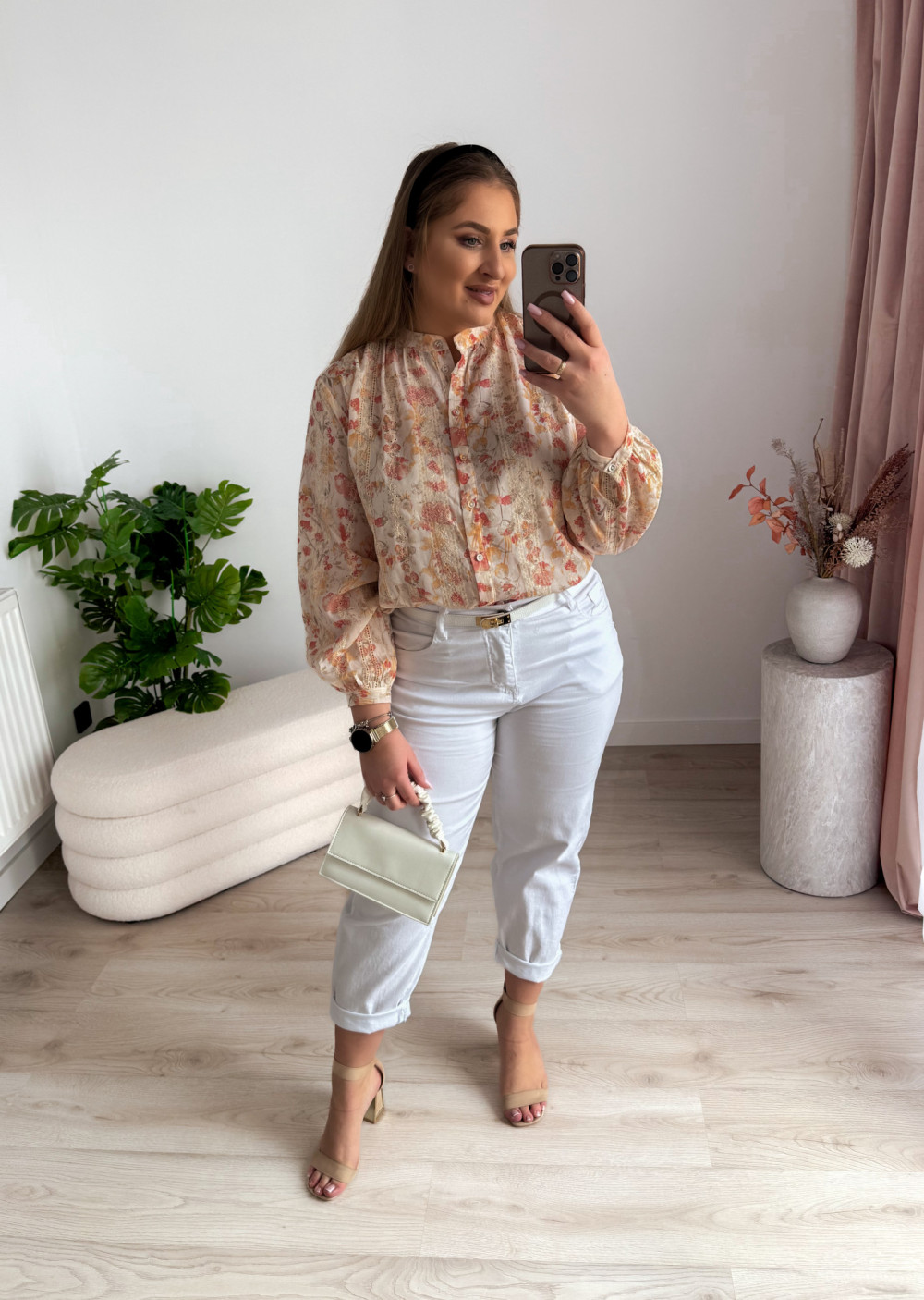 Koszula w pomarańczowo-różowe kwiaty z koronką Santana