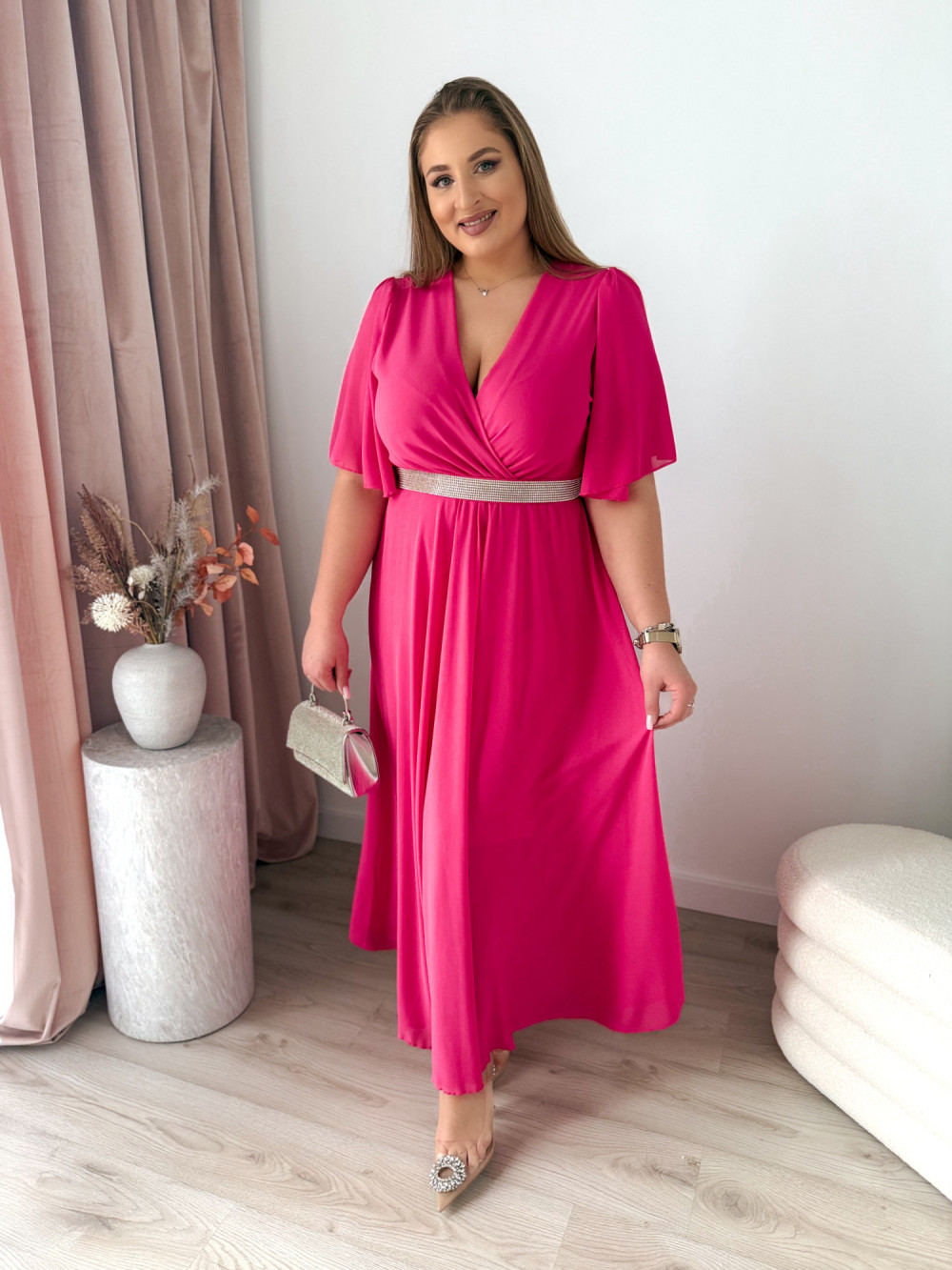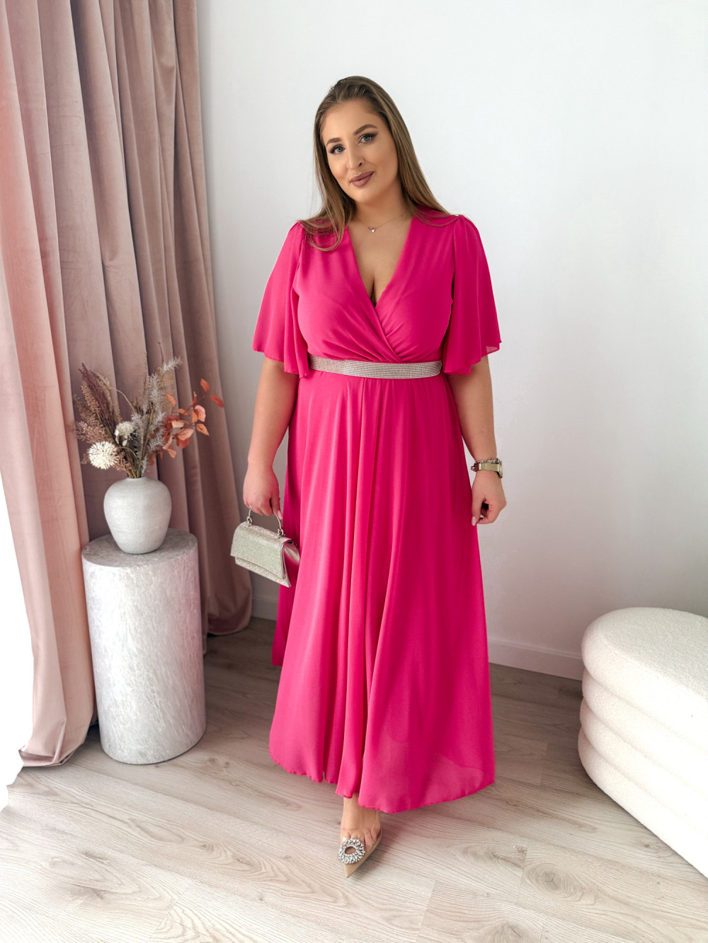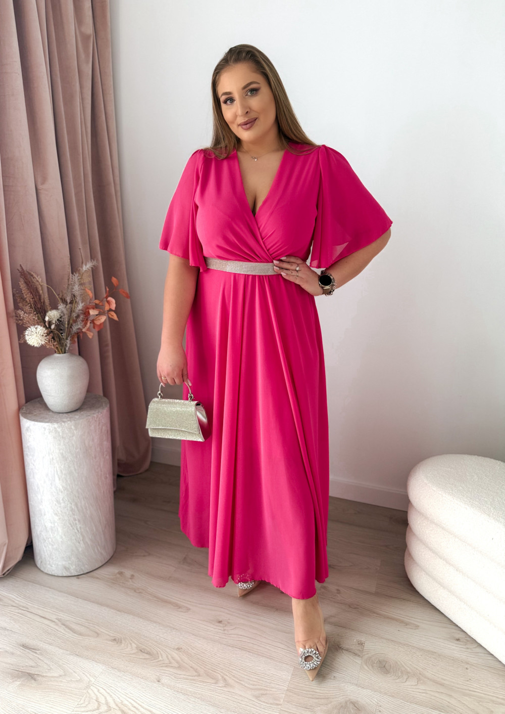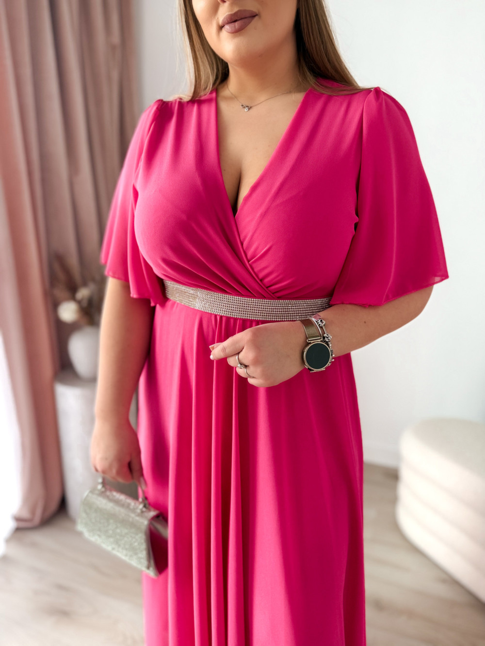 Sukienka maxi z ozdobnym paskiem Marisol - fuksja