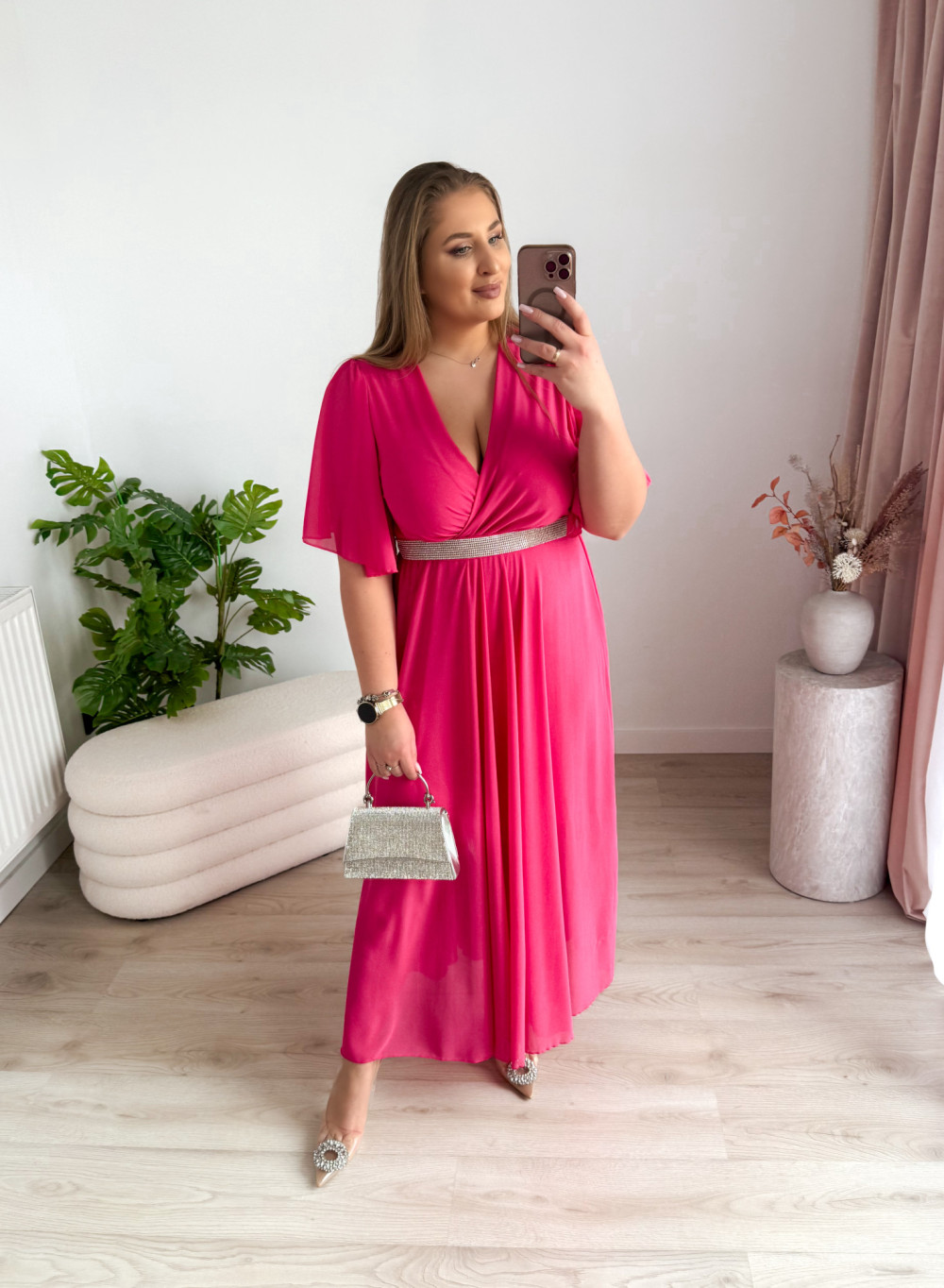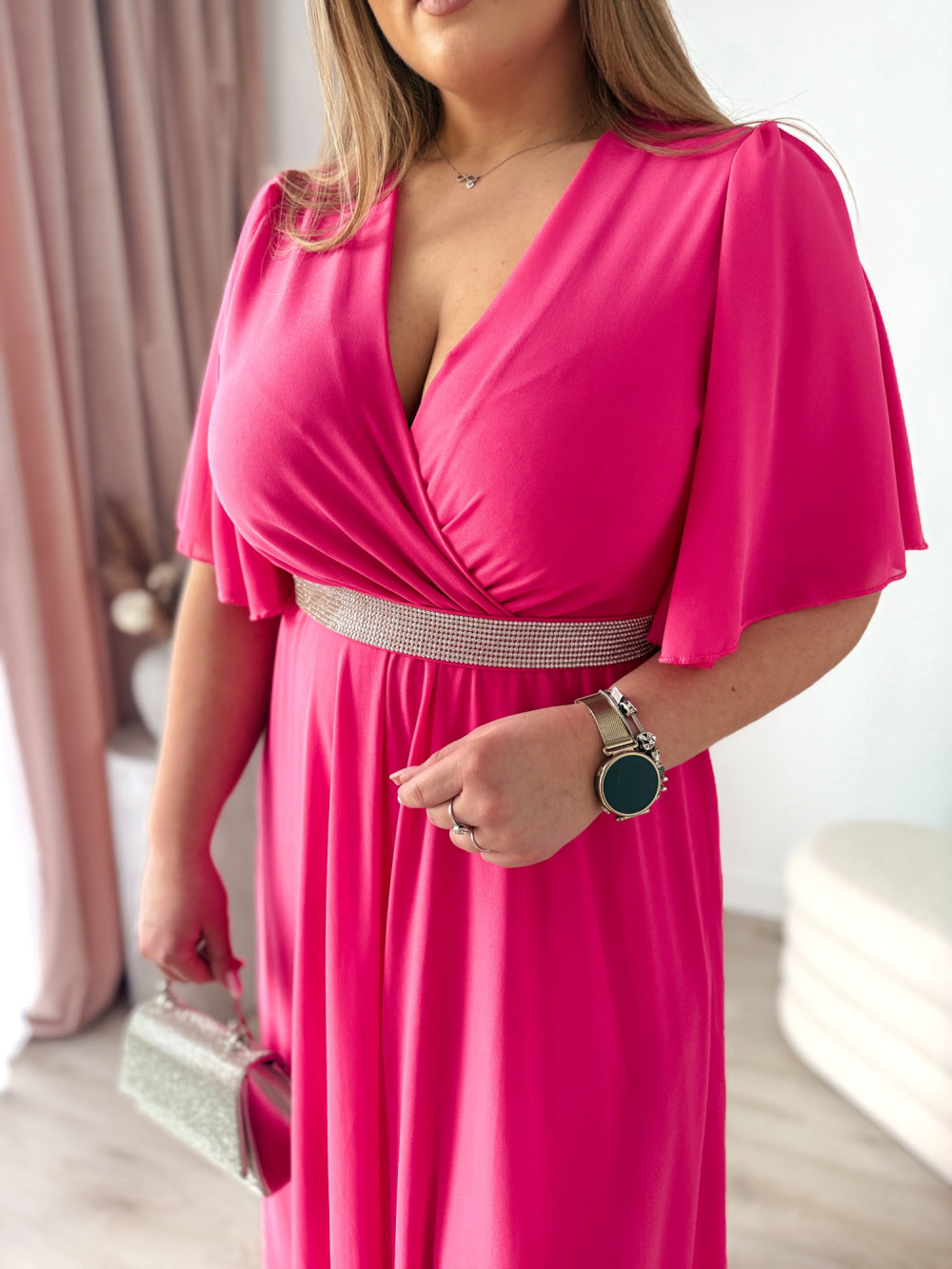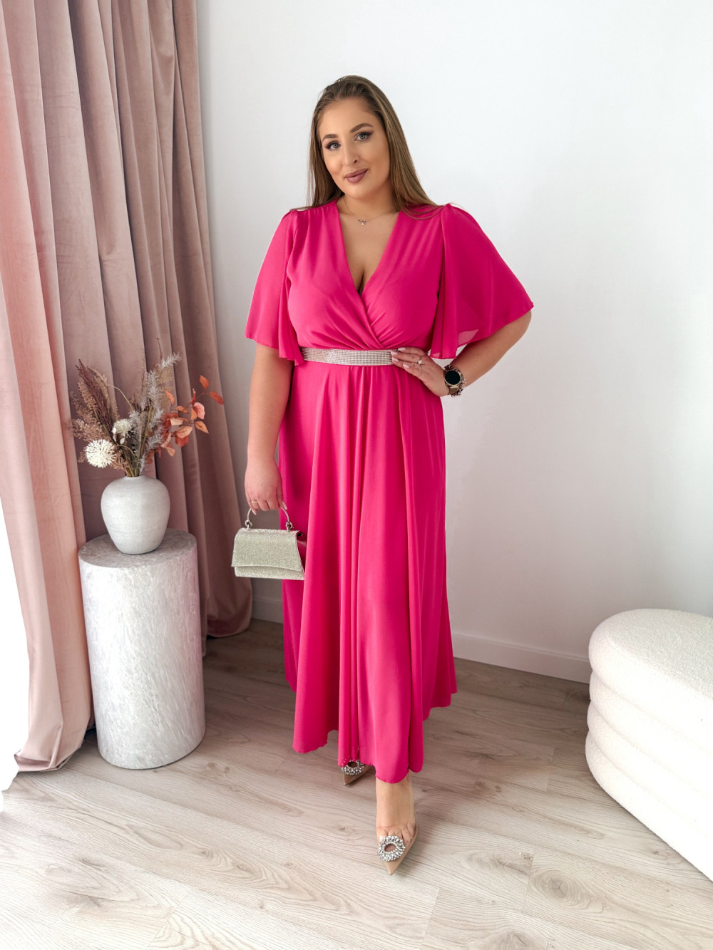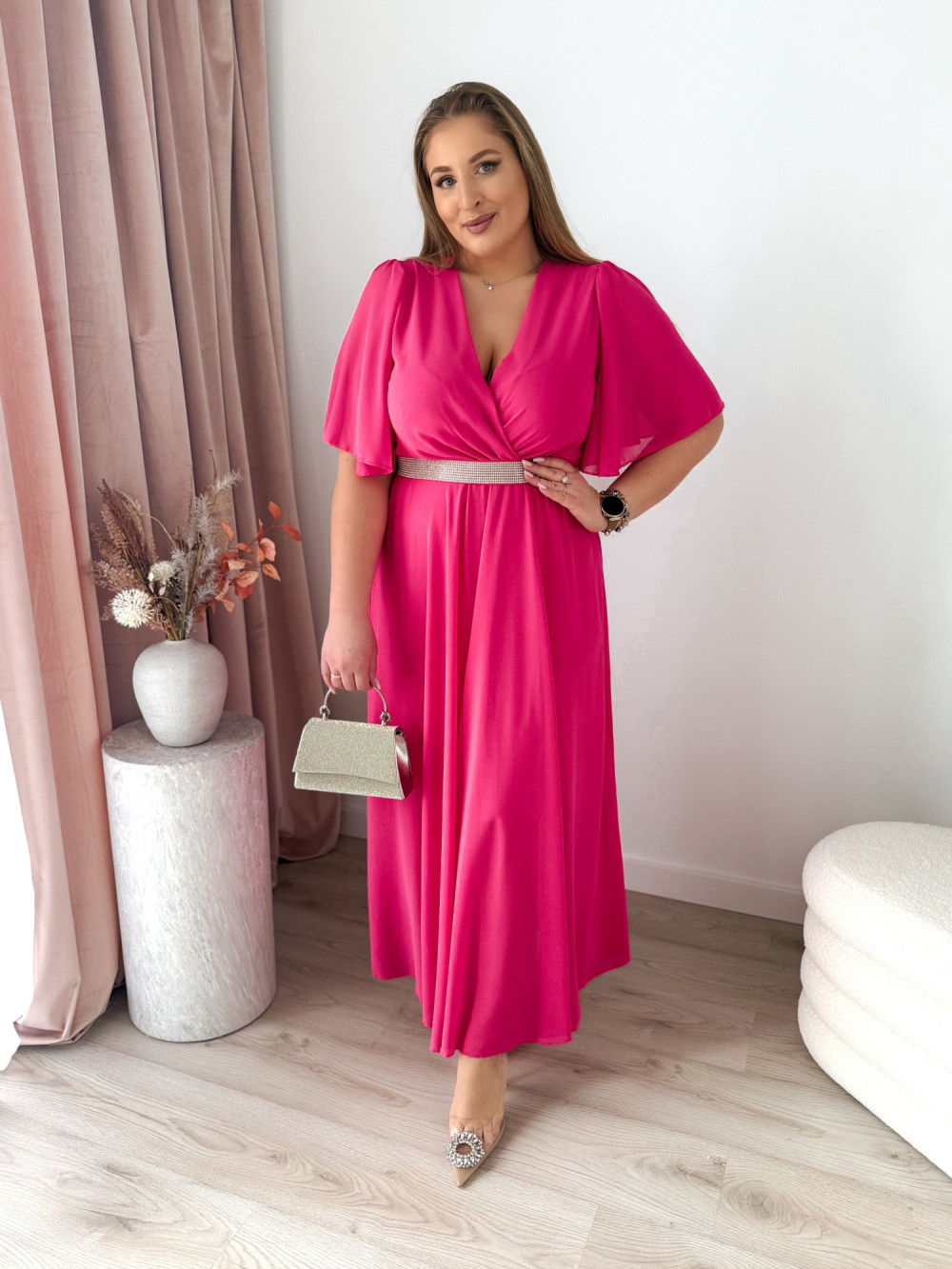 Sukienka maxi z ozdobnym paskiem Marisol - fuksja