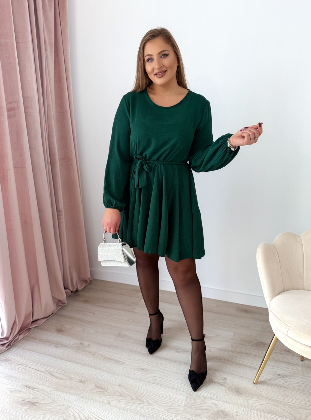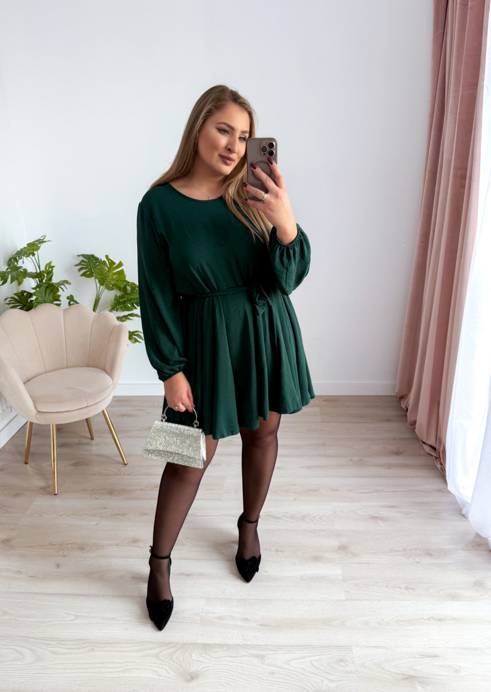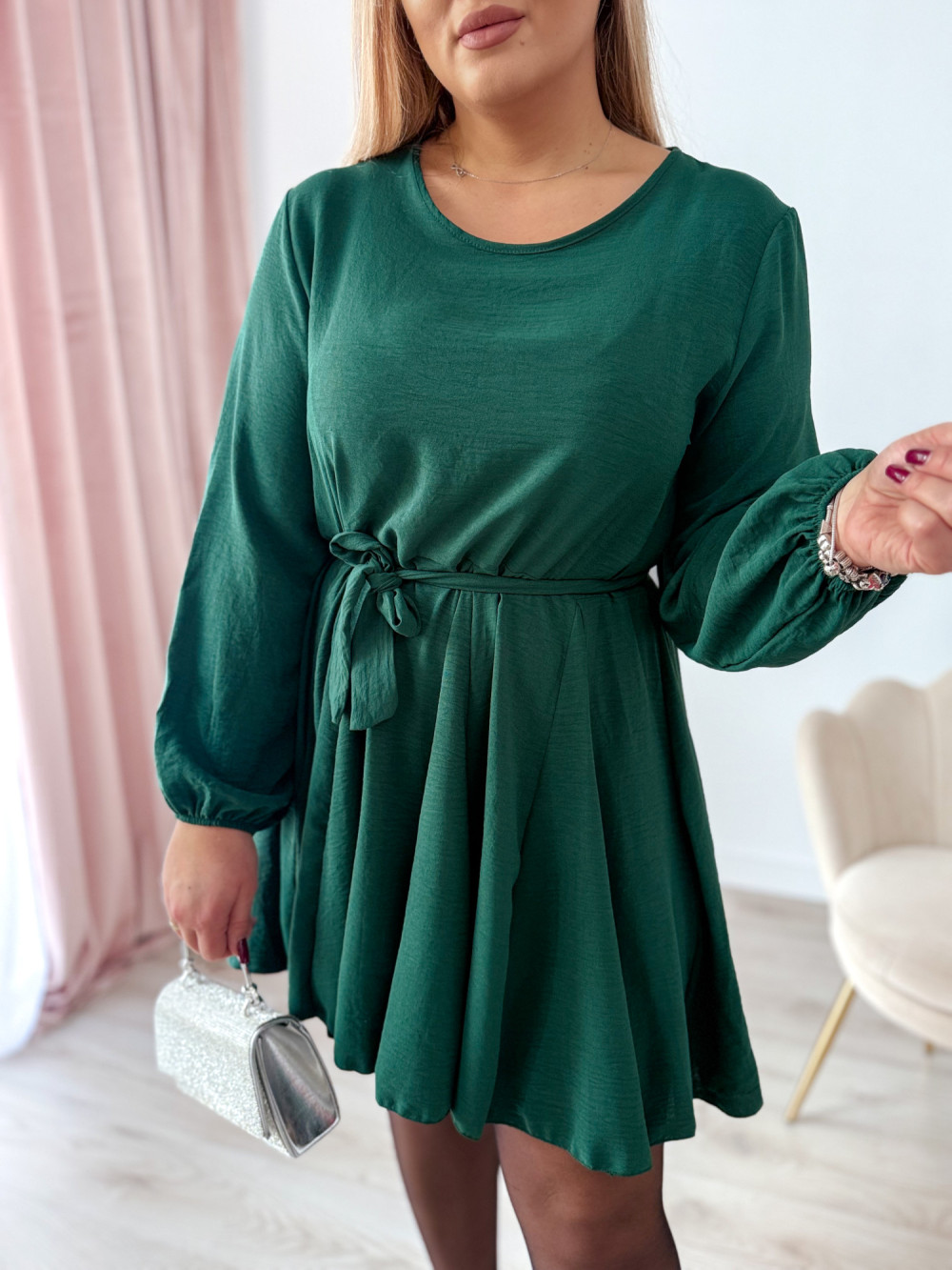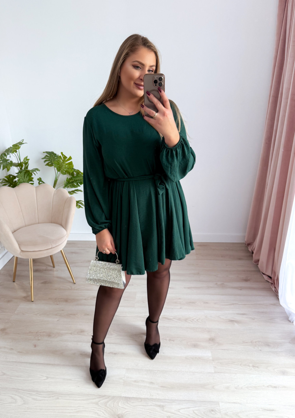 Rozkloszowana sukienka z wiązaniem Nina - butelkowa zieleń