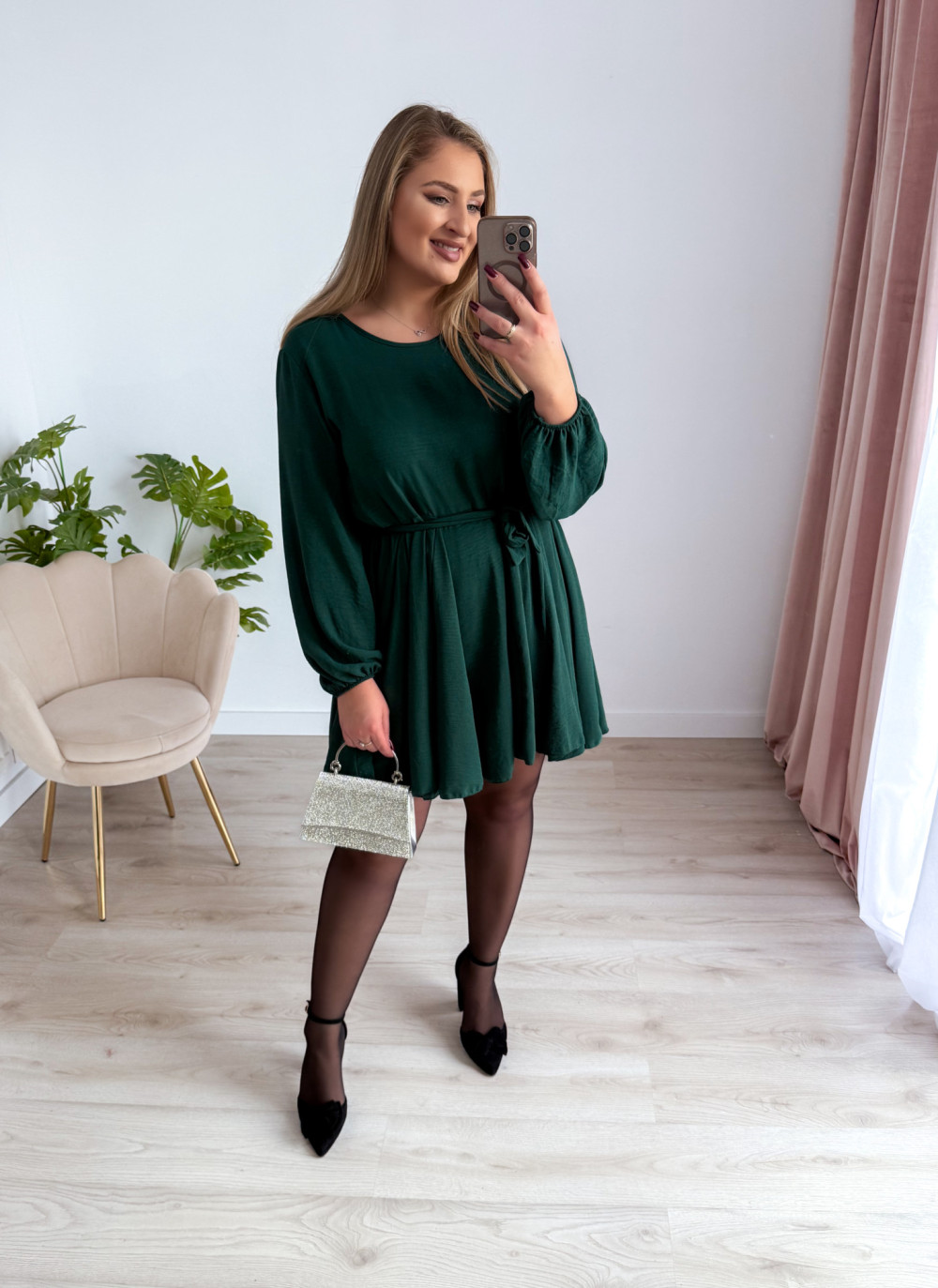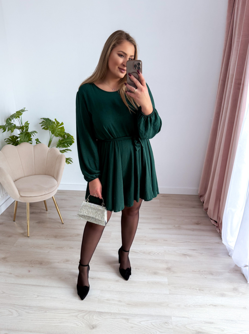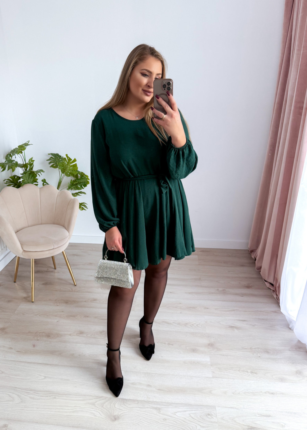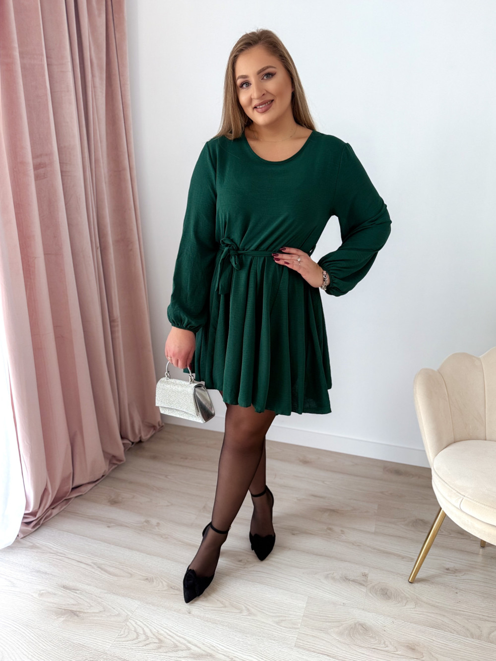 Rozkloszowana sukienka z wiązaniem Nina - butelkowa zieleń