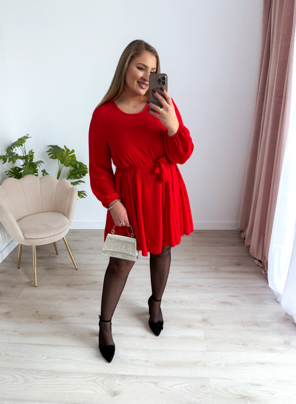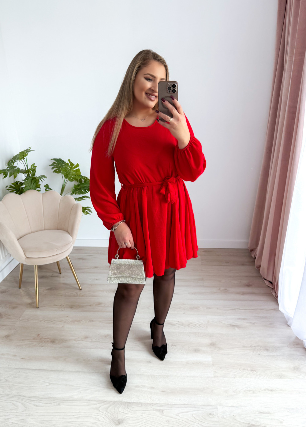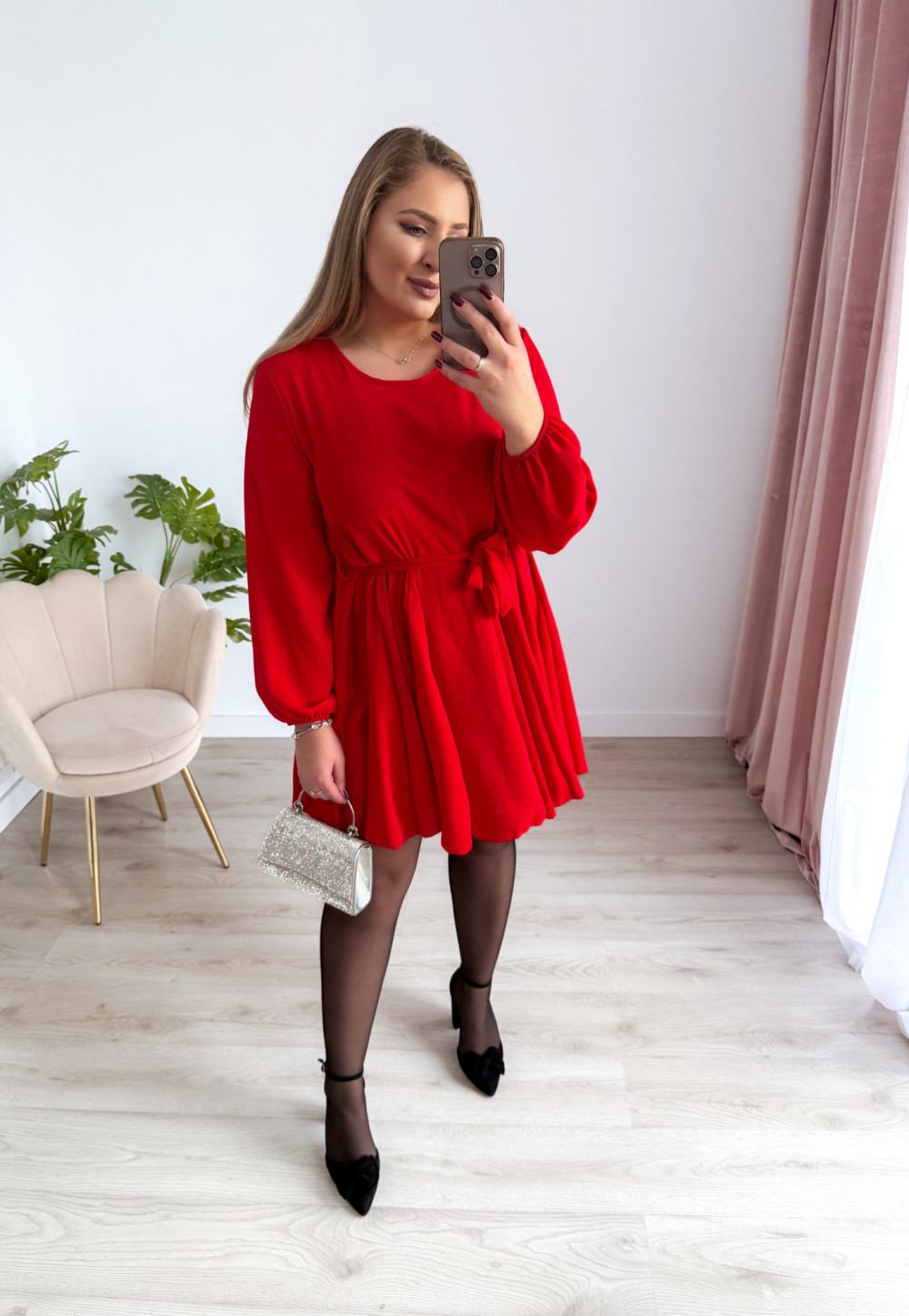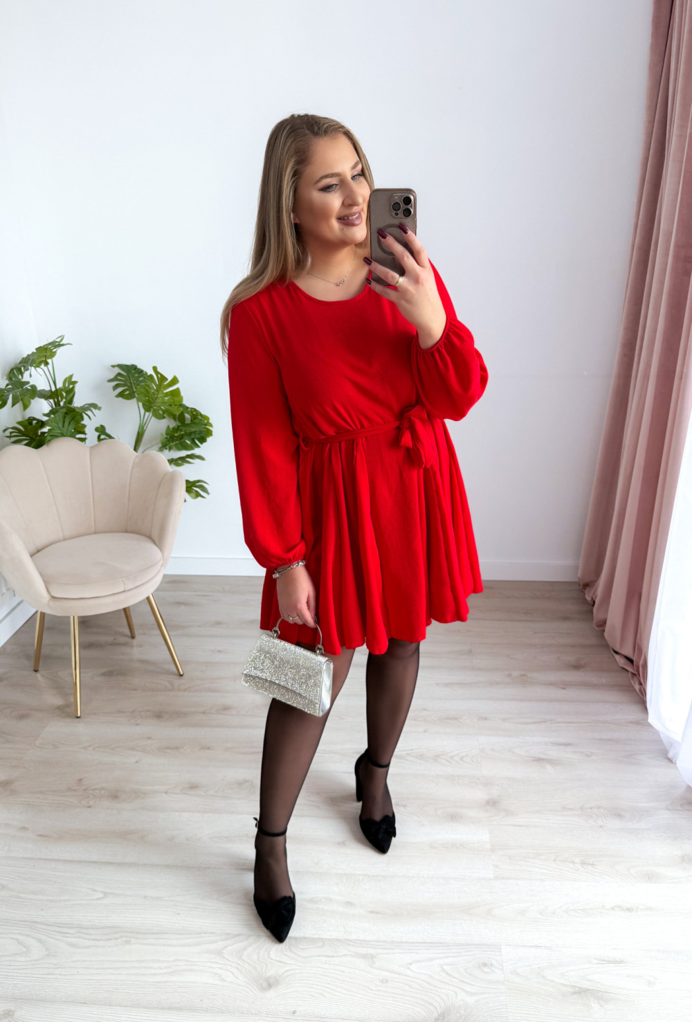 Sukienka rozkloszowana z wiązaniem Nina - czerwona