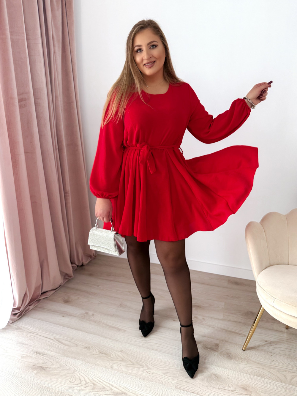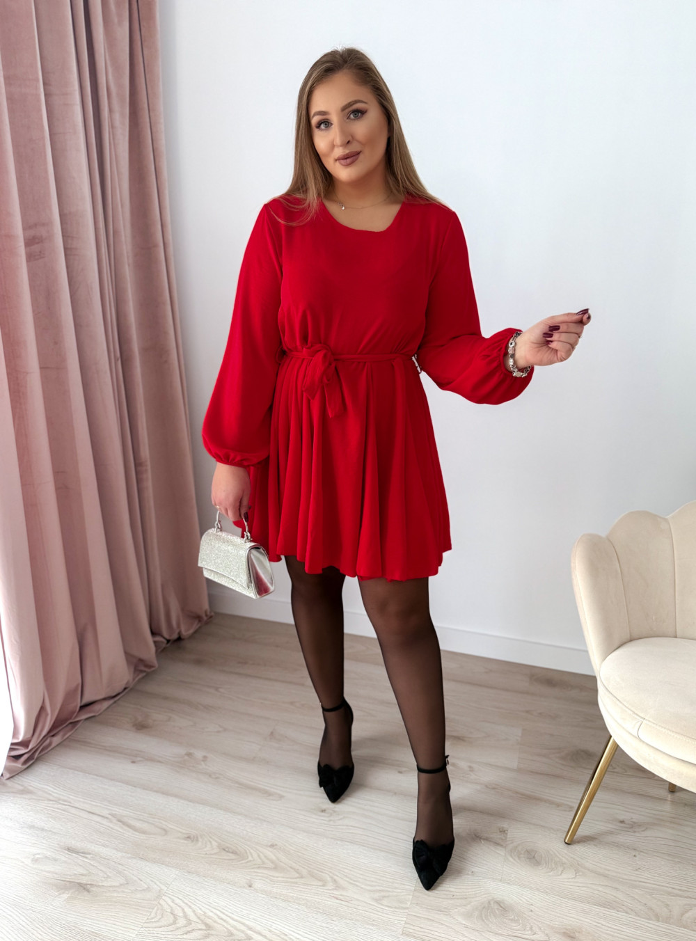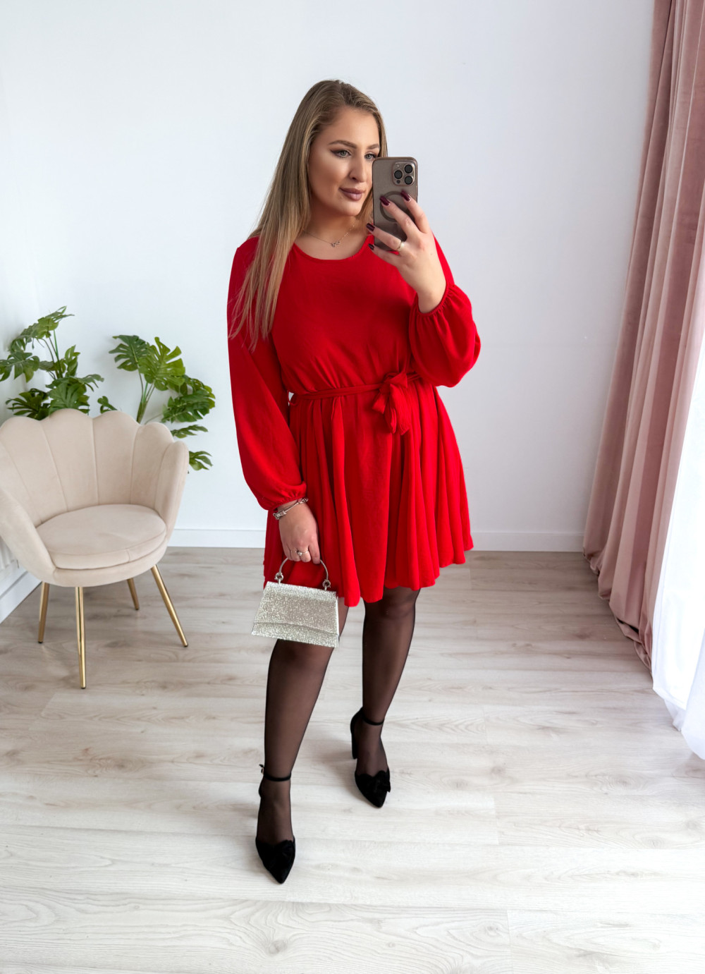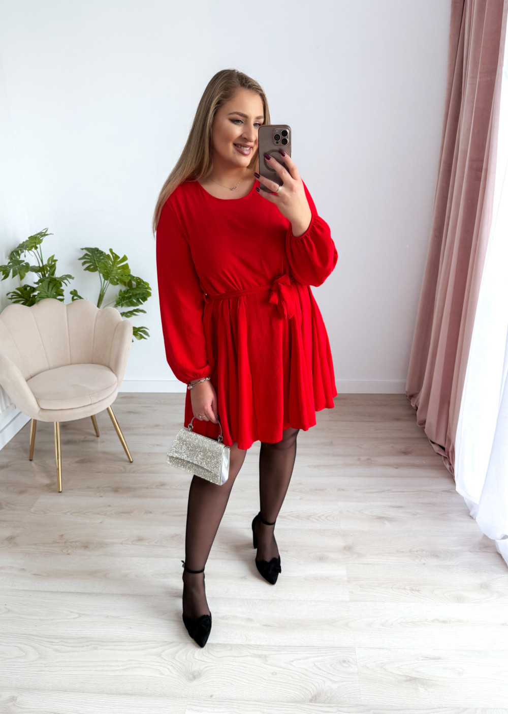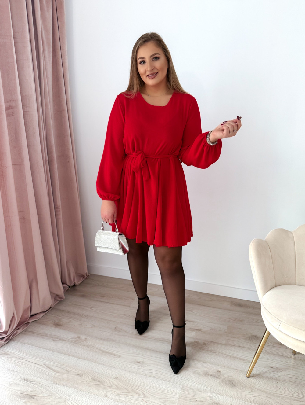 Sukienka rozkloszowana z wiązaniem Nina - czerwona